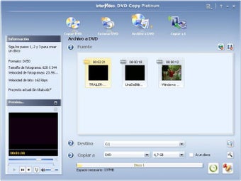 InterVideo DVD Copy permite comprimir la película para que quepa en los DVD de 4,7 GB, ostensiblemente más baratos y fáciles de conseguir.